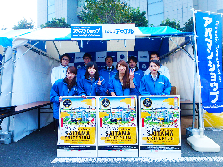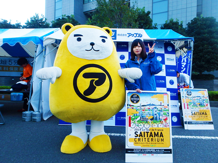 世界的な自転車レースのツールドフランス。その名を冠した国外大会、それが、さいたまクリテリウムです。昨年に引き続き、アップルでは協賛企業として会場にてイベントブースを出展させていただきました。今年の企画は、アパマンショップのイメージキャラクターであります「べあー君」が登場しました。