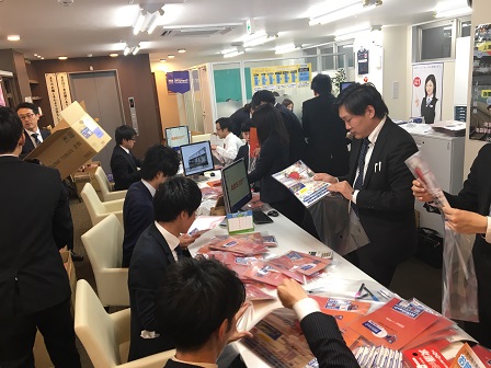 ということで、前日に周辺のアパマンショップの店舗から有志が集い、配布準備を行いました。