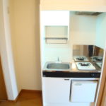 初めての一人暮らしの人にもお勧めしたいアパートです。玄関を入るとダイニングキッチンとはいかないですが、ふわっと広がるキッチン周りの空間は、他の多くの細長いアパートの間取りとは違いを感じます。ちょっとした食器戸棚を置くには厳しいですが、食器類などないよという人には、キッチン、洗面、洗濯機置場、バスルームのレイアウトが使いやすくて良いと思います。
