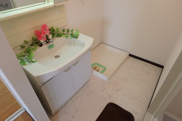 ▼ 洗面所です。洗濯機置場が同室にあり、お隣はバスルームで使いやすい構成。
