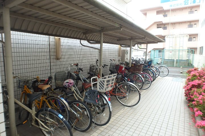 ▼ 駐輪場は屋根つきです。敷地内に駐車場(別契約)もありますよ♪