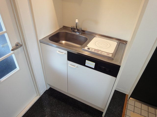 キッチンはIHクッキングヒーター。簡単な調理なら、これで十分です。