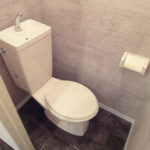 室内も大理石風の床材です。右側の壁には木目調のクロスが貼られており、高級感がありますよ♪