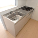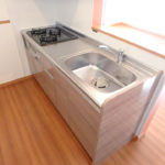 カウンターキッチンです。リビング全体に目が行き届きますね。洗い物や調理をするときも、手元が明るいです。