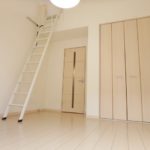 ▼室内は明るいトーンのフローリング&建具。ロフトがついているため、天井が高く、開放的です。