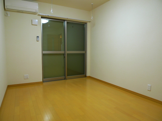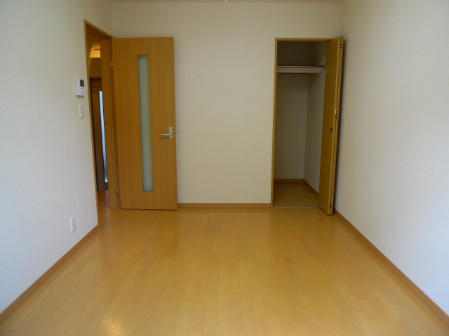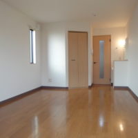 約6帖の居室です。フローリング床なのでお掃除もラクラクです。外出時や夜間などにはシャッターを閉めるのを忘れずに♪
