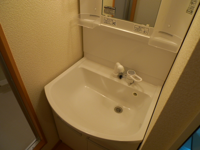 キッチンの横は独立洗面台です。伸縮するシャワータイプで使い勝手が良いです。