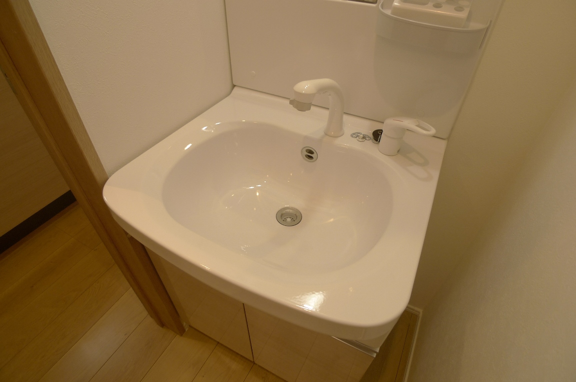 バスルームの手前に、パウダールームがあります。洗面台はハンドシャワータイプです。
