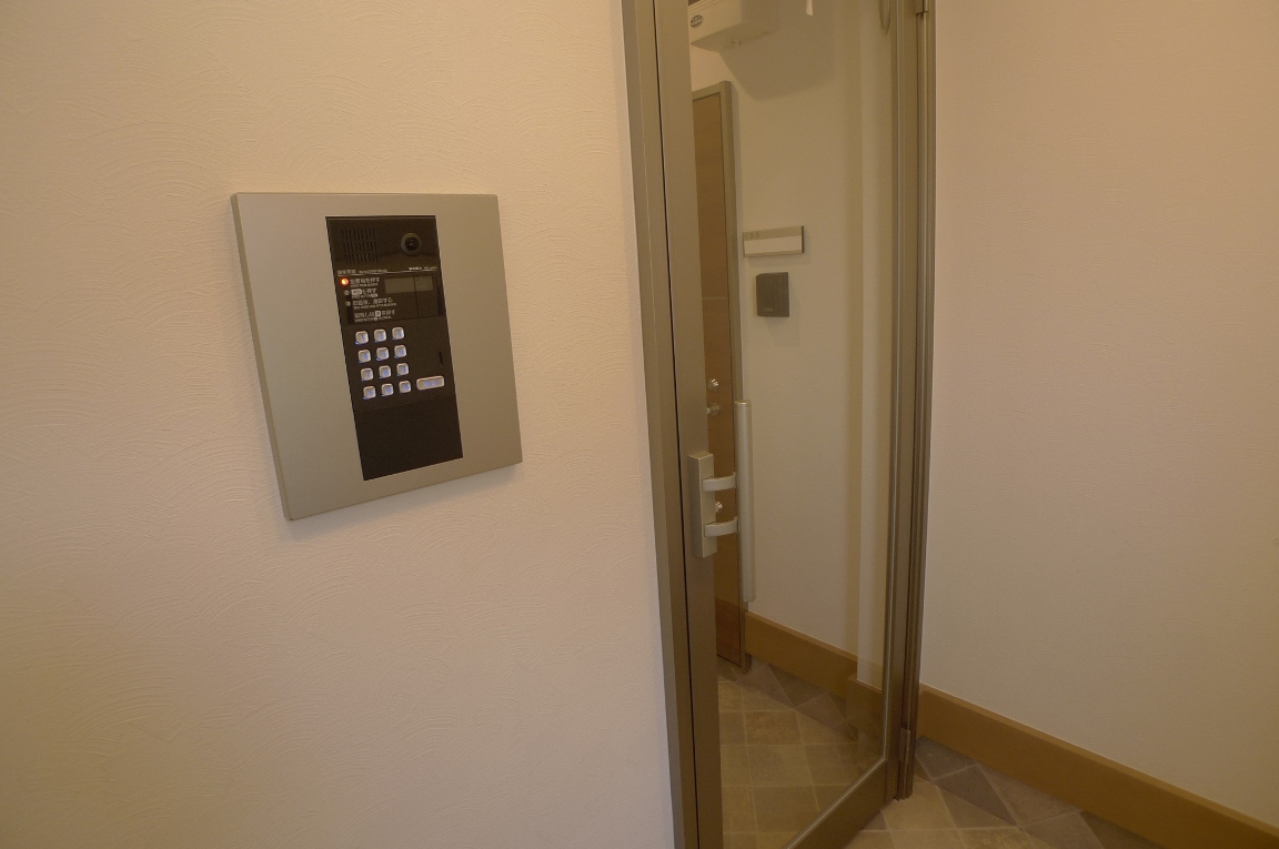 オートロックのエントランスです。また、外側から玄関扉が見えない内廊下式の建物です。プライバシーを守り、防犯的にも優れています。