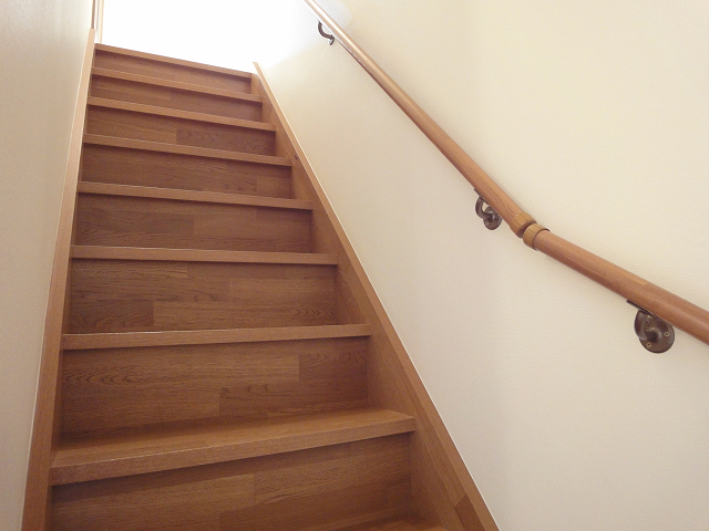 ▼手すりの付いた階段。