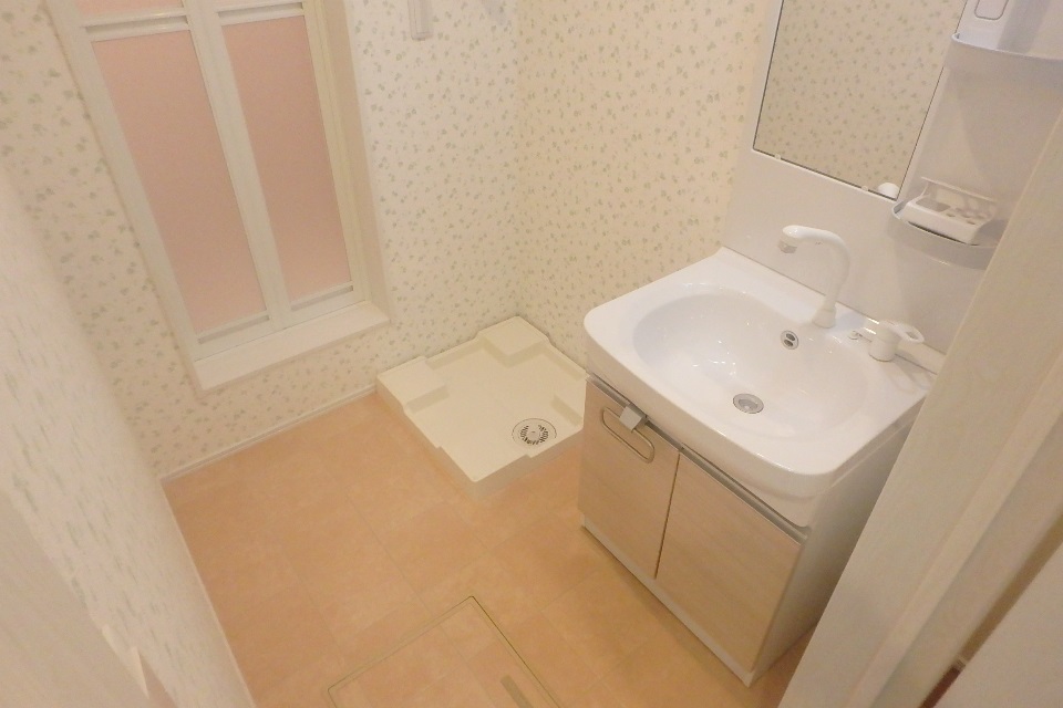 洗面所にはハンドシャワータイプの独立化粧台がありました。 鏡がくもらないようヒーターがついています。