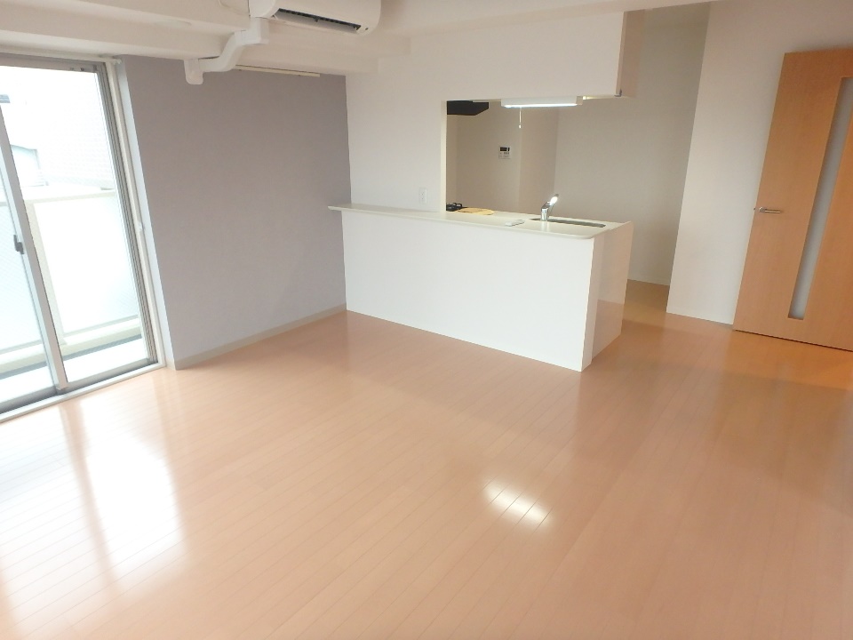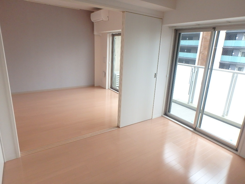 室内写真です。こちらは2LDKタイプ。5.3帖の洋室側から撮影しました。