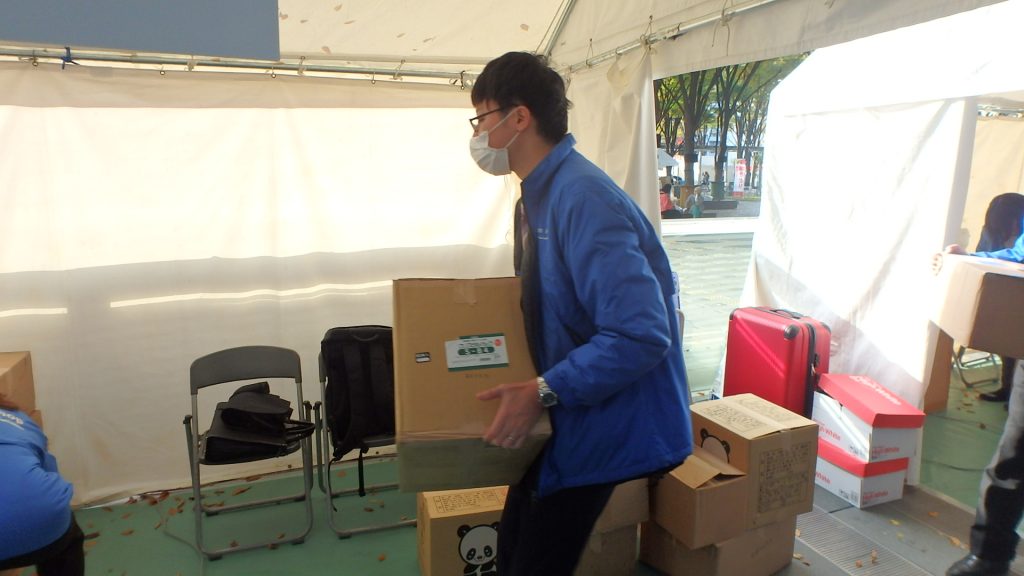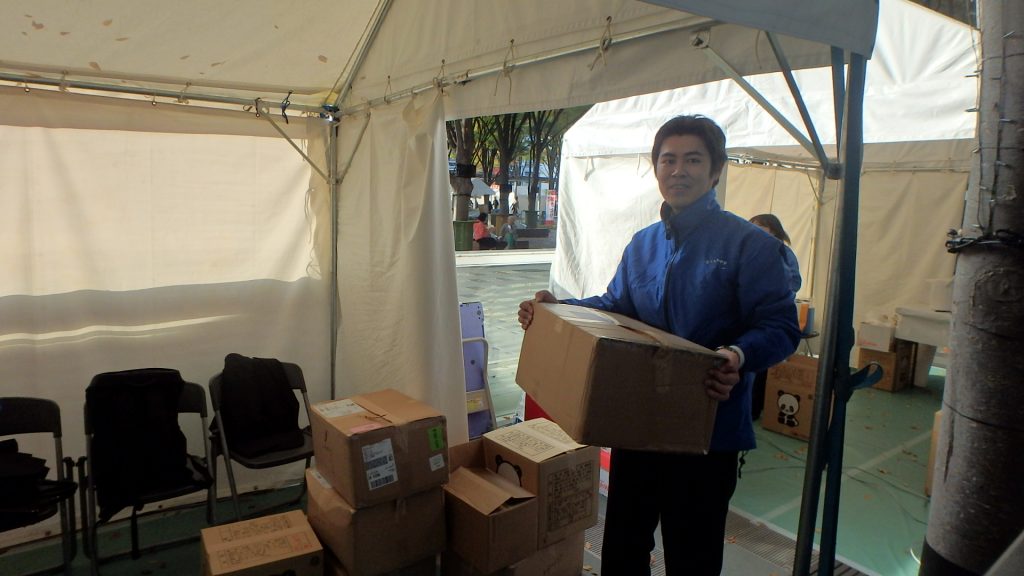 会社から段ボールに入れたアイテムの数々を運び入れ、中身を取り出しセッティングしてゆきます。