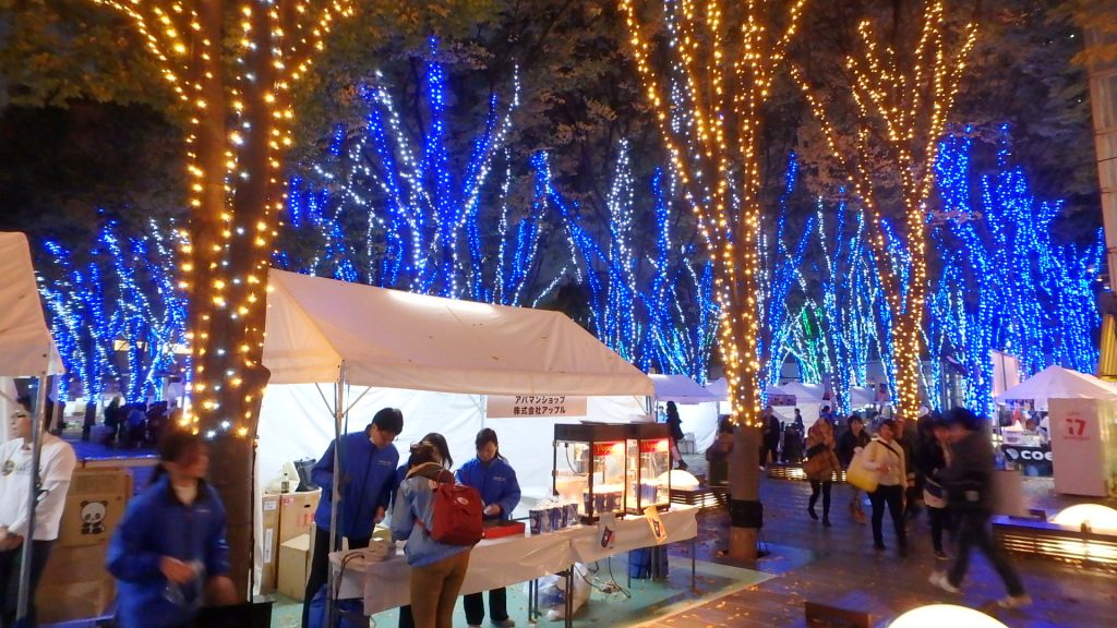 5時にさいたま新都心の名物のイルミネーションが点灯。