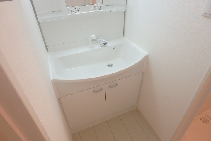 ▼ 朝の身支度が格段にズムーズになる独立洗面台。受け皿も大きく、シャワーもOK。また、バスルームの手前の扉で仕切られた小部屋にあるので、脱衣所としての役割も果たします。