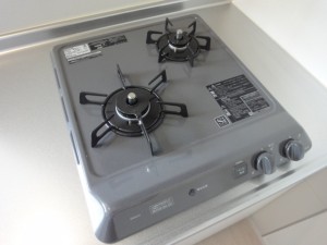 2口ガスコンロのシステムキッチンです。作業スペースも充分です。2口なので料理の幅が広がります♪ガスコンロは火力の心配もいりません。