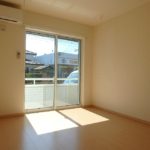 ▼ バルコニー側から見た室内。南向きで明るい日差しがあります。クローゼットは幅約113㎝・奥行きは約53.5㎝ありました。