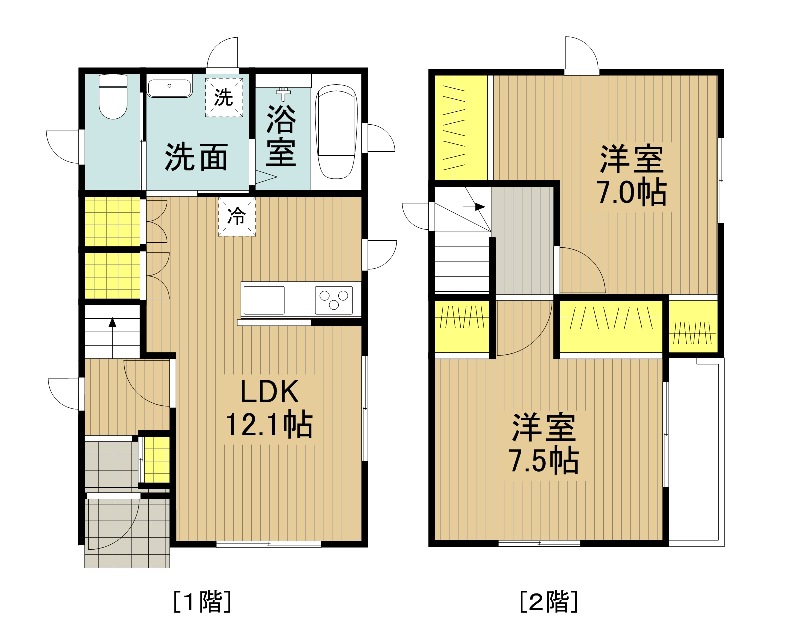2LDKタイプと3DKタイプの間取りがあります。例として2LDKの間取りをご紹介します。