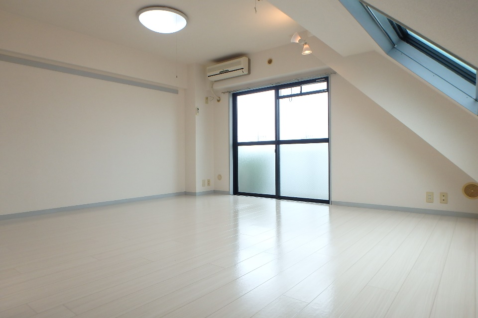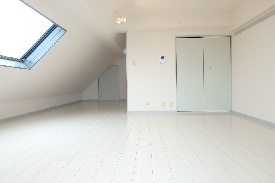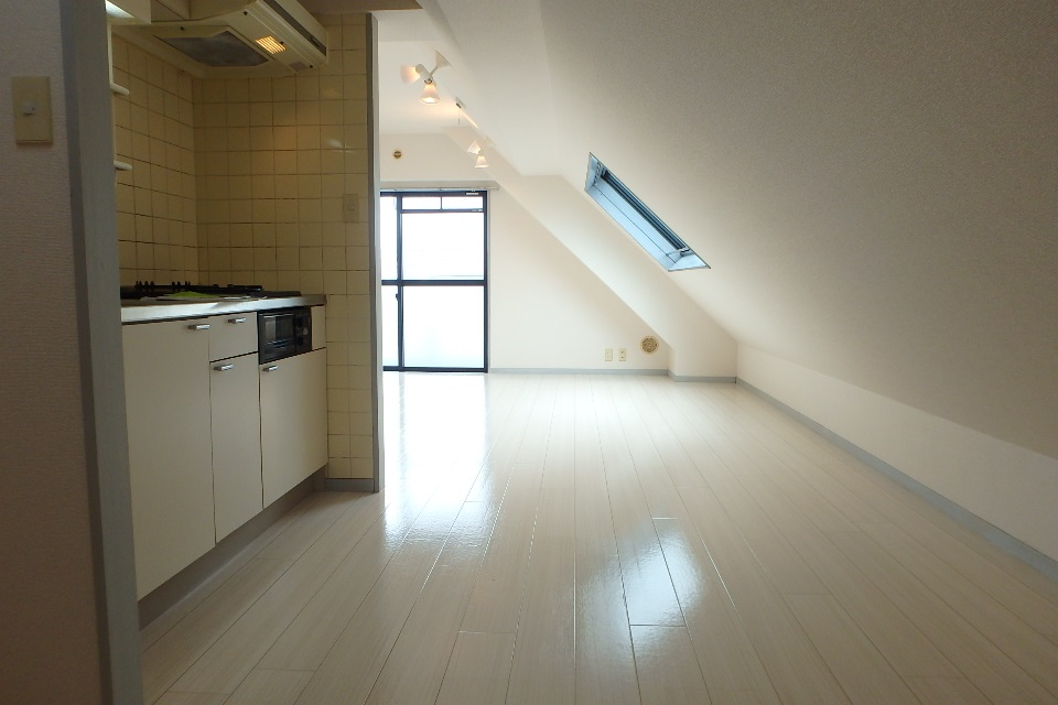 ▼今回は最上階の角部屋である406号室を撮影して参りました。建物の形状にあわせて片側の壁が斜めになっている個性的なワンルームです。家具の配置などで制限はありますが、お部屋が大きいので不自由さを感じさせません。専有面積は36.3㎡あります。