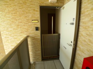 TVモニターホン付の玄関です。訪問者をひと目で確認できますよ。ペットが急に飛び出していかないようにゲートが付いてます。ペット可物件ならではのうれしい設備です。