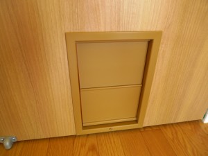 天井まであるトールタイプの収納でたっぷりと荷物をしまえます。室内の扉にはペット用の出入口が付いてます♪