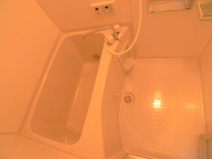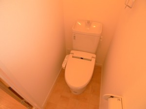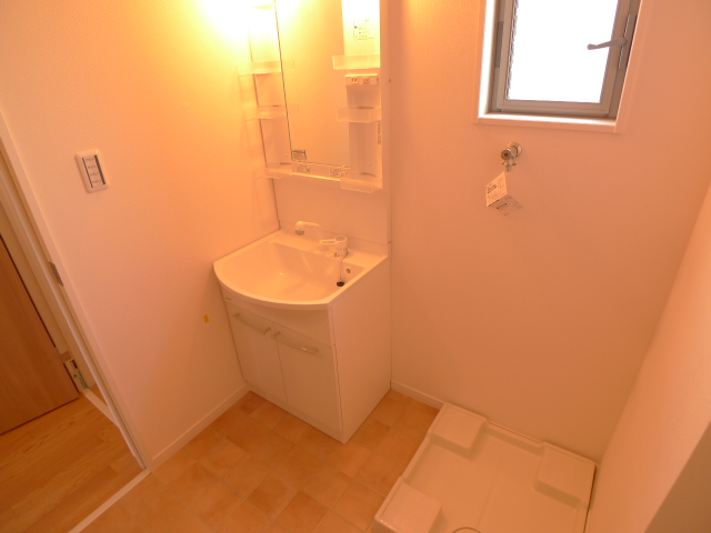 水回りのご紹介です。独立洗面台はシャワーヘッドの伸縮タイプ。すぐ横には室内洗濯機置場があります。バスルームはオーソドックスタイプ。追い焚き機能付き。トイレは温水洗浄便座です。