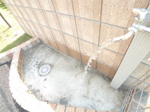広く、特徴的な敷地内。植栽も丁寧に植えられております。共用部にはペットの足洗い場があります。散歩帰りに部屋の中を汚さずに済みます♪
