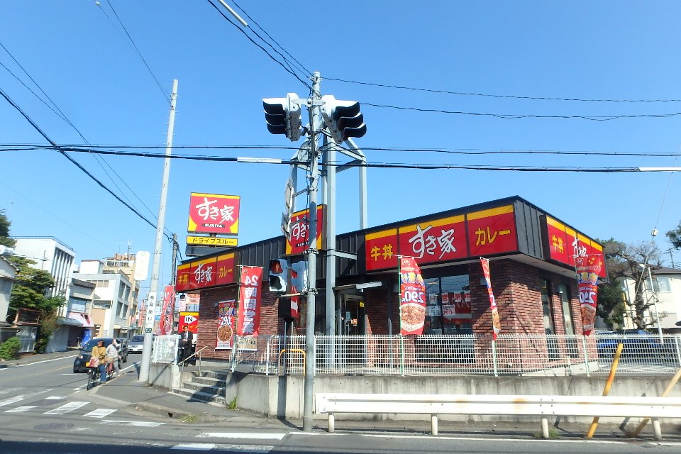 目の前に飲食店が並んで建っています。