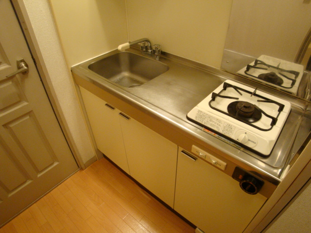 1口ガスコンロタイプのシステムキッチンです。作業スペースも充分あり、一人暮らしにはちょうどいい大きさで、お掃除も簡単です。