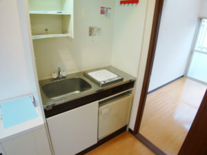 アパマンショップ大成店の店長と女性向けにリフォームしたワンルームの写真を撮りに行…