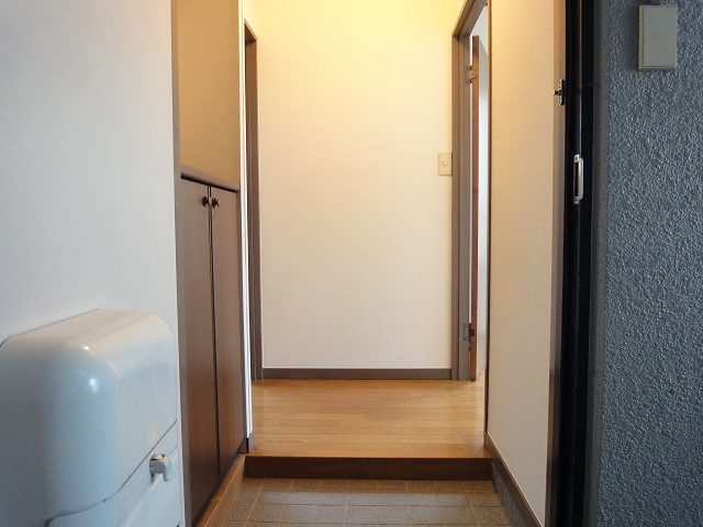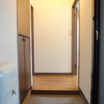 玄関口です。玄関から左右のお部屋に振り分けられた人気の間取り。まずは左側に行ってみましょう。
