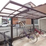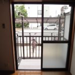 ▼バルコニー前は駐輪場。さらに、その先は駐車場。 道路ではないので、あまり人目が気にならない。