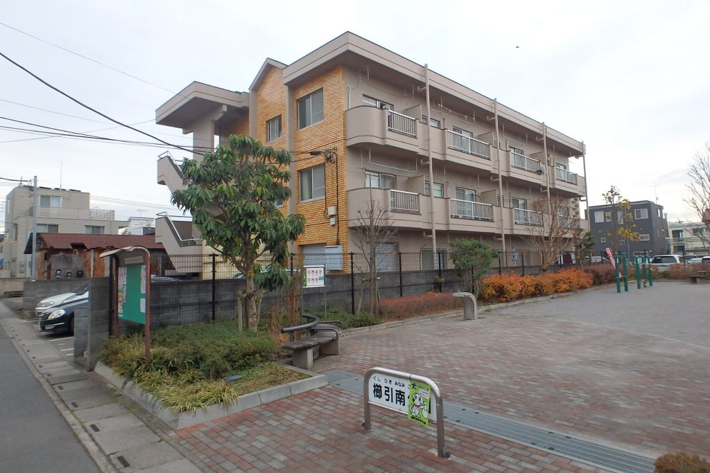 マンション自体の向きは西向きとなります。隣の敷地は、ご覧のように公園です。(櫛引南公園)