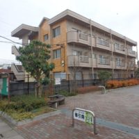 薄いイエローの歩道橋にアパマンショップブルーの色がよく映えます。