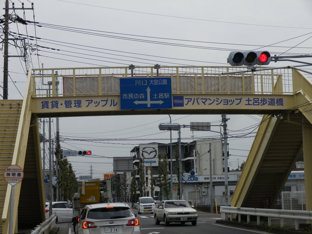 土呂駅の近くの産業道路の交差点にある歩道橋に、「アパマンショップ アップル」の名前が冠せられました。