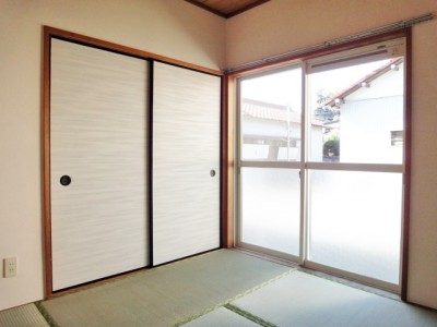 和室は約6帖で、こちらにもテラス、ベランダにつながる窓があります。たっぷりと充分な収納スペースもあります!