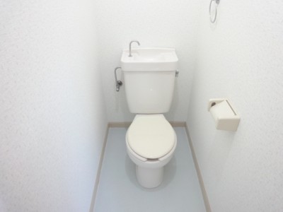 トイレは手洗い場が一体型のスマートタイプのフォームです。タオル掛けも付いてます。白を基調とした清潔感のあるトイレですよ♪