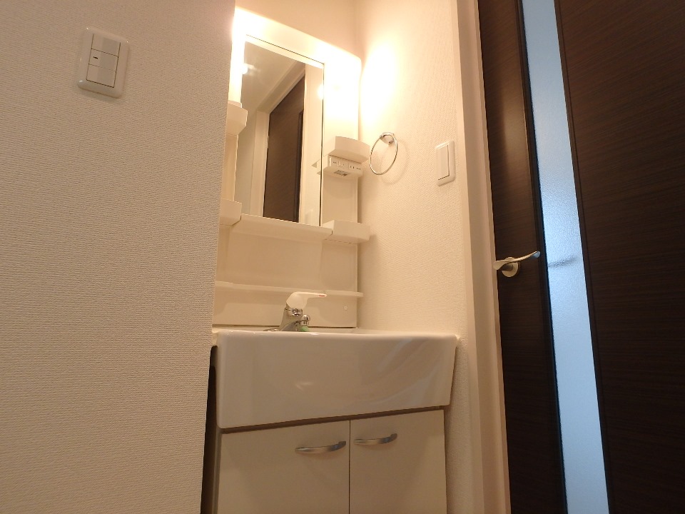 独立洗面台です。朝の身支度、お風呂上りの髪のお手入れなど、独立洗面台があると格段に便利です。