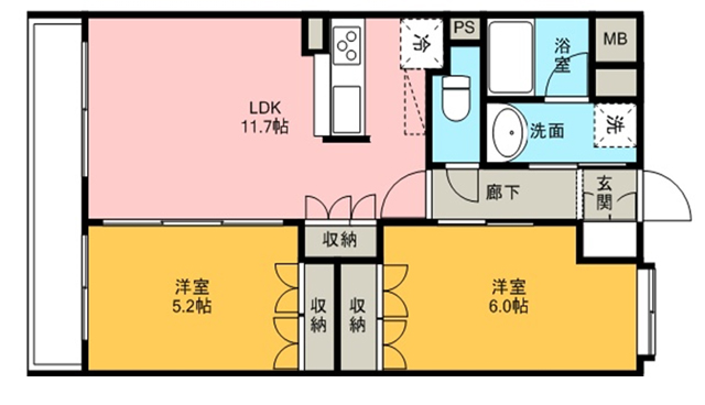 ▼ ベルディきよみ野は2LDK間取りです。203号室の専有面積は51.2㎡あります。