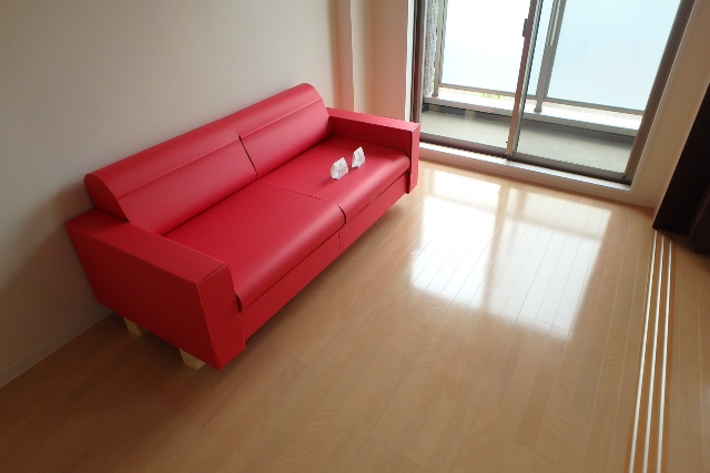 ▼ リビングは11.7帖です。イメージが湧きやすいように紙でできた家具を設置しています。