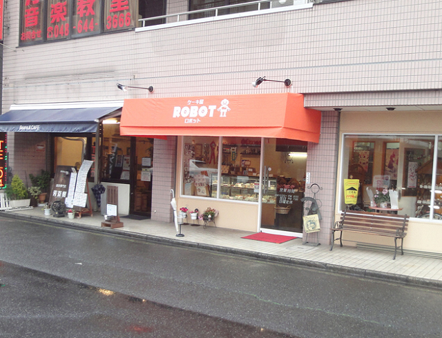 ▼ ラ・フォーレから、歩いてすぐにあるスイーツのお店。「ロボット」さんです。ケーキ大好きな人にはうれしいお店ですね♪