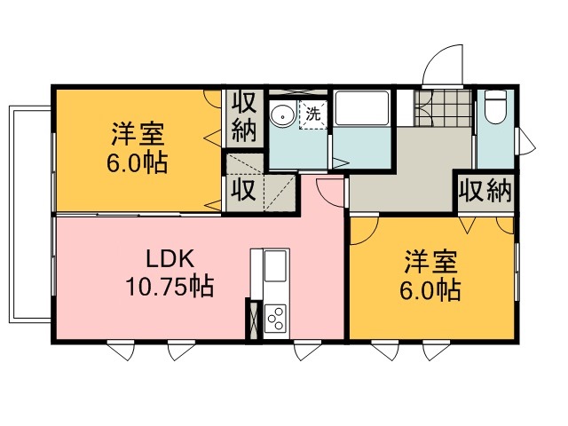 ルシェル北浦和は2LDK間取りです。専有面積は53.98~58.83㎡。 2号室タイプのバスルームは広々1坪サイズとなっております。例は1号室タイプです。