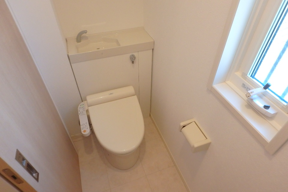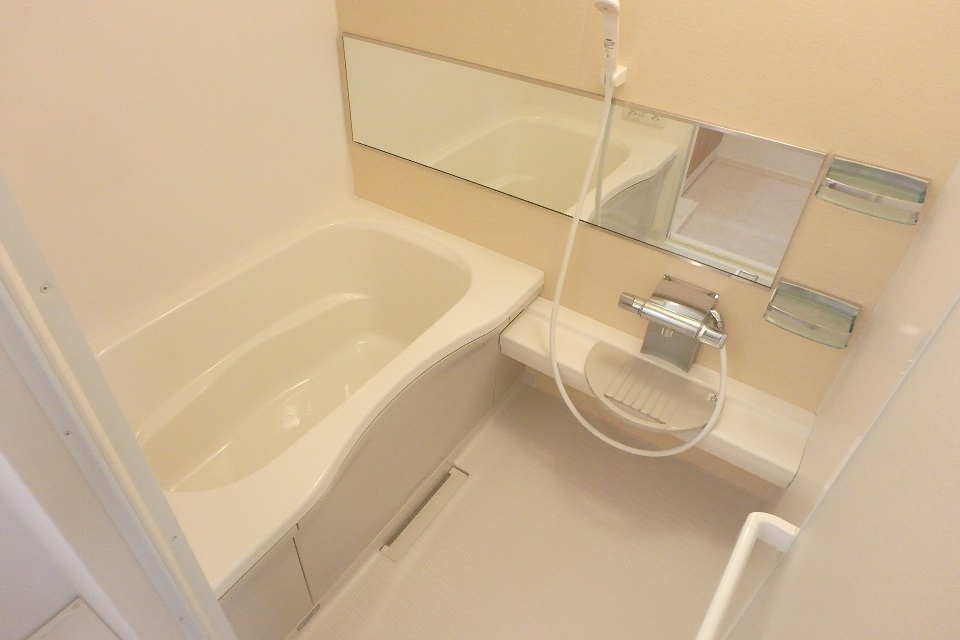 追い炊き機能のあるお風呂です。1号室と3号室には浴室乾燥機もついています。2号室には浴室乾燥機がないかわりに、1坪タイプと呼ばれる大きな浴室が採用されています。