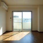 ▼バルコニー側から室内を撮影。台所スペースとお部屋の間が扉で仕切られていないのでワンルームタイプに分類されますが、こちらのお部屋は突っ張り棒をカーテンレールのように利用すれば、簡単に仕切ることができます。