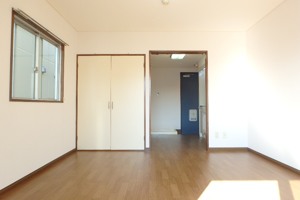 ▼明るい洋室です。 502号室なので中部屋かと思いきや、角部屋で二面採光(壁2面に窓がある)のお部屋でした。
