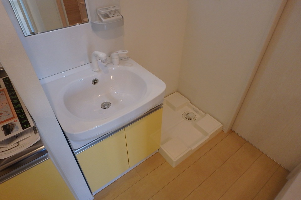 キッチン脇に、シャワー機能のついた独立洗面台があります。朝の身支度が、ぐっと楽になりますよ。