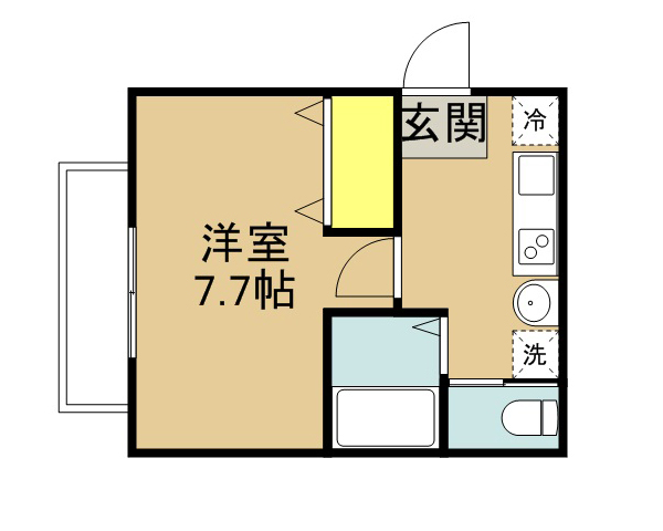 お部屋は7.7帖あるので、ベッドや家具一式を置いてもゆとりの広さ♪