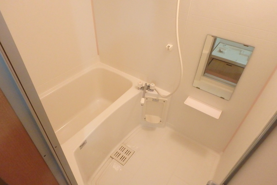 ▼清潔に保たれたバスルーム。同じバストイレ別物件でも、洗面ボウルが付属しているタイプもあります。Nハウス2は洗面ボウルがないので、すっきりしていて洗い場がゆったり使えます。