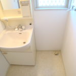 ・洗濯機置場、洗面台、脱衣室、そして、お風呂(バスルーム)。これらの水回りがニーズのポイントをきっちりおさえています。洗面は独立しているので、バスルーム内の洗面で、足が水浸しってことはありません。また、脱衣室スペースが確保でき、家族間のプライバシーも保てます。脱衣室に洗濯機を置くことができますので、生活導線は、スムースです。脱いだ衣類は、洗濯機へGO!です。