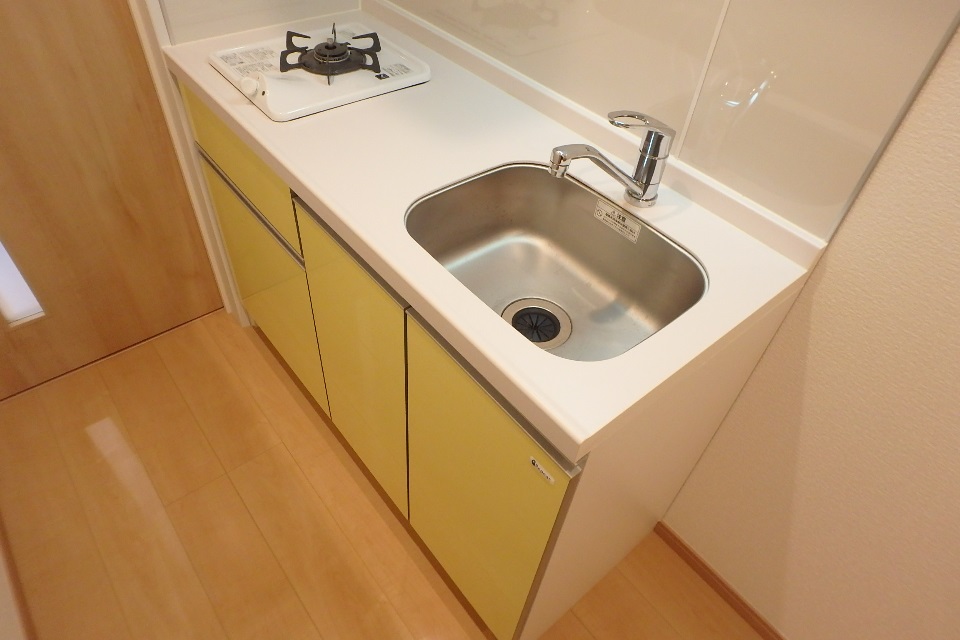 キッチンです。清潔感のあるホワイトストーンの天板を使用しています。